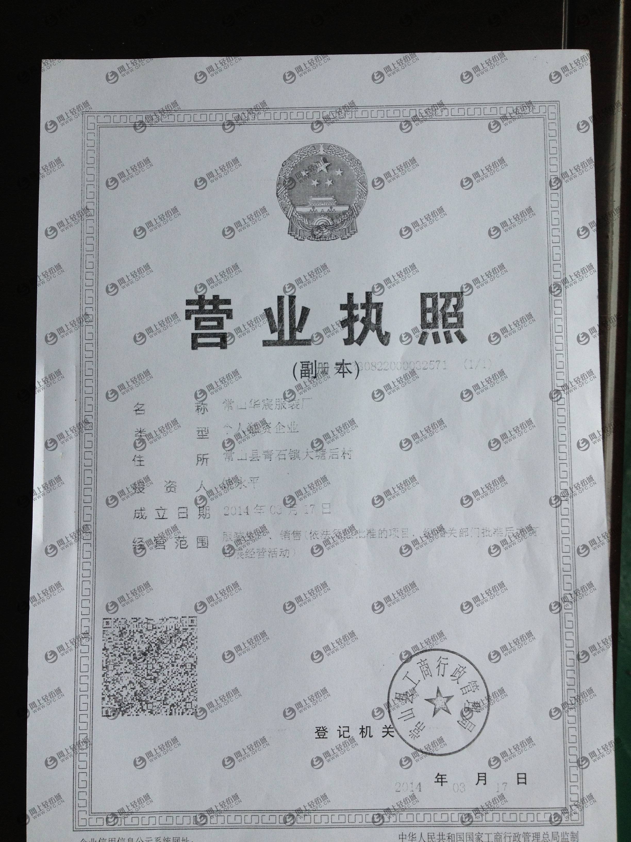 公司名稱 常山華宸服裝廠