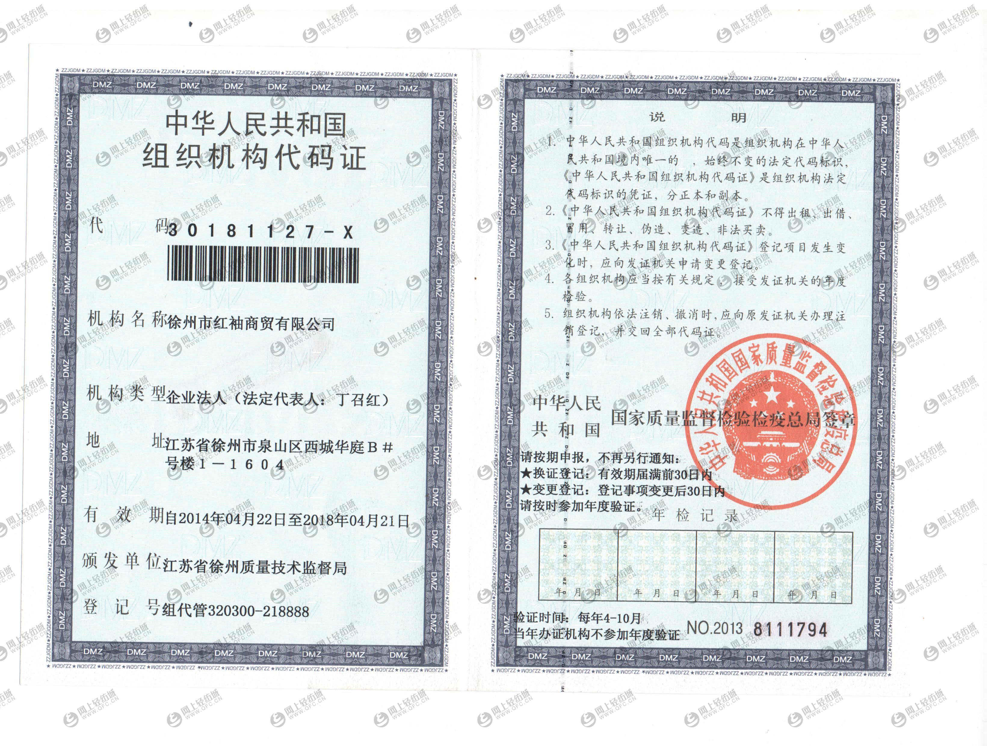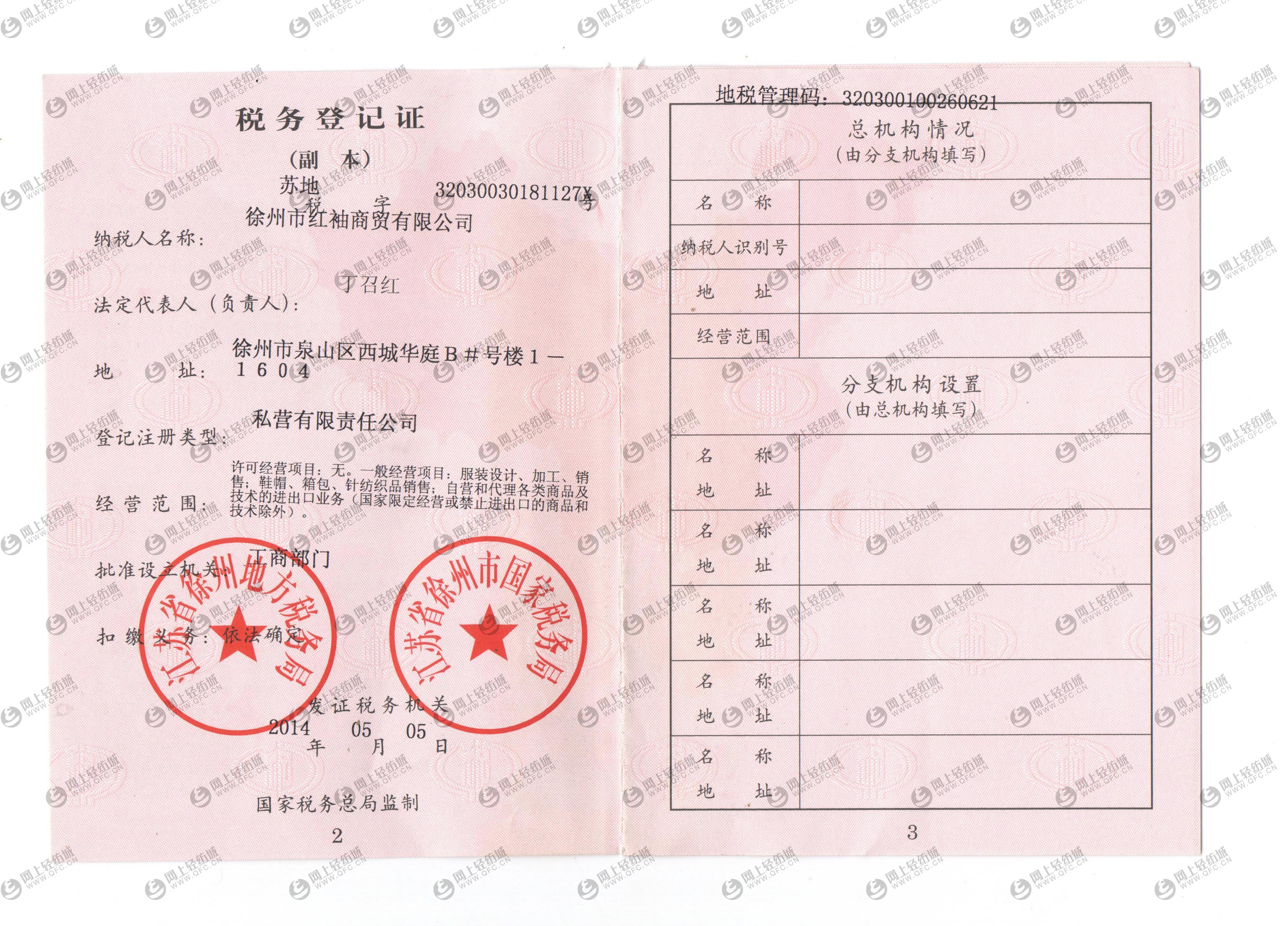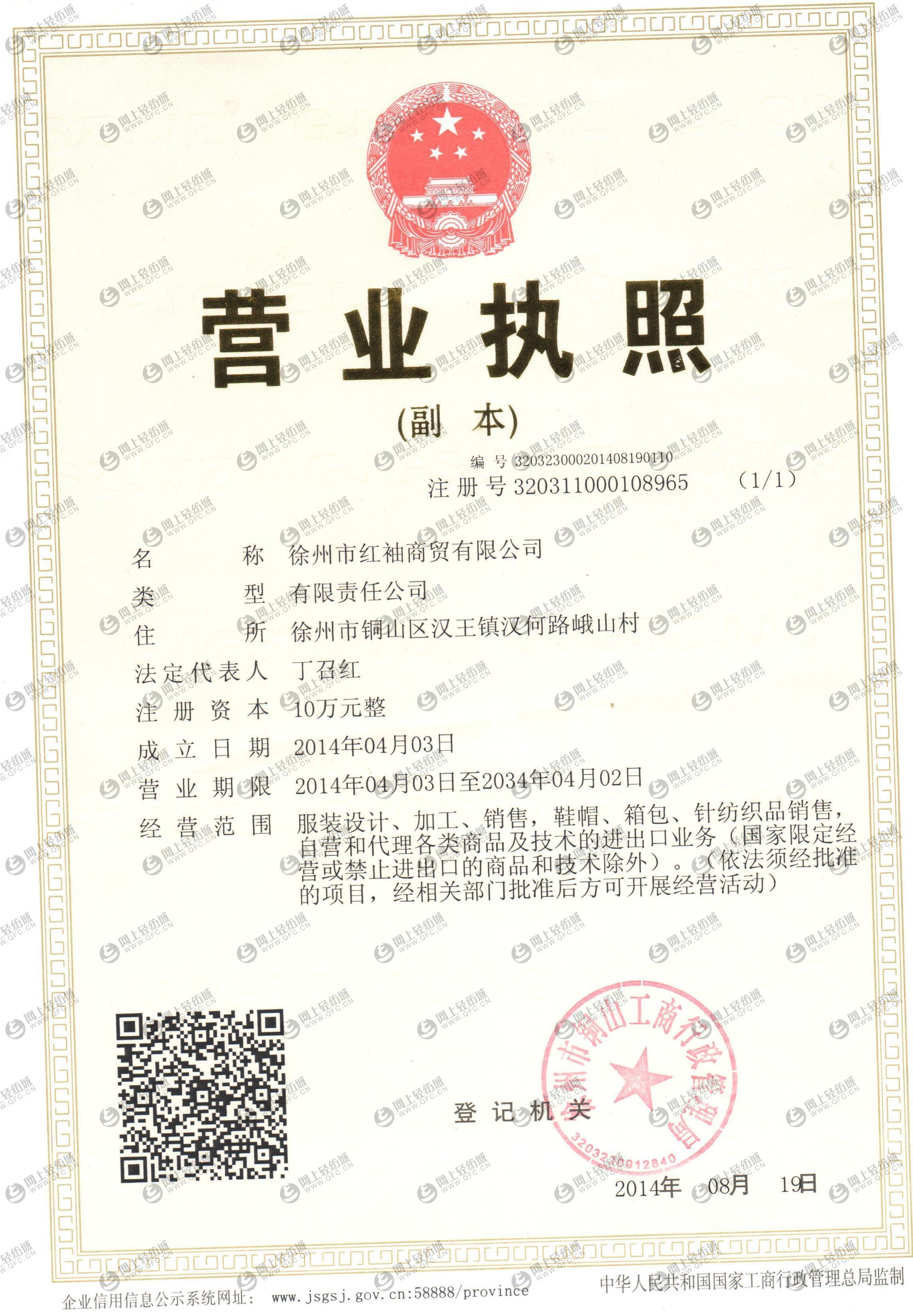 | 統(tǒng)一社會信用代碼/營業(yè)執(zhí)照注冊號: | 320311000108965 | 名稱: | 徐州市紅袖商貿(mào)有限公司 |
