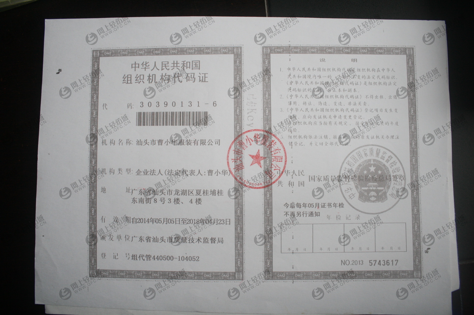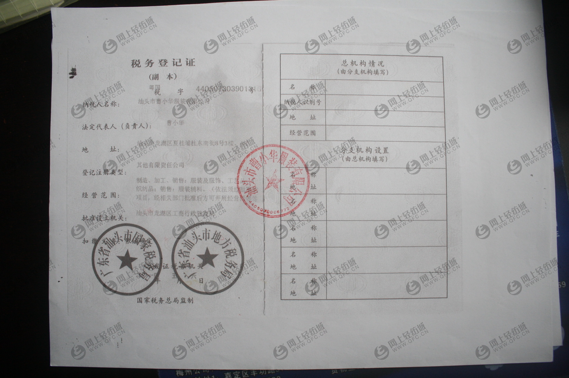 公司名稱 汕頭市曹小華服裝有限公司