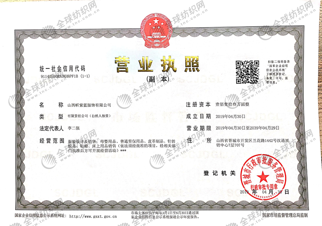公司名稱 山西昕紫藍服飾有限公司