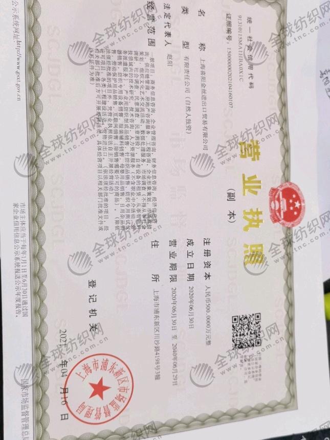 | 統(tǒng)一社會(huì)信用代碼/營(yíng)業(yè)執(zhí)照注冊(cè)號(hào): | 91310115MA1HBA0X1C | 名稱(chēng): | 上海喜陽(yáng)金絲進(jìn)出口貿(mào)易有限公司 |