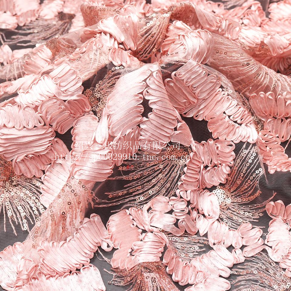 HX0146615 特種繡 三合一重工繡 緞帶織帶3mm珠片立體繡花面料