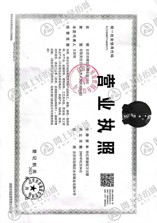 | 統(tǒng)一社會信用代碼/營業(yè)執(zhí)照注冊號: | 91510300771668957J | 名稱: | 自貢市博宏絲綢有限公司 |