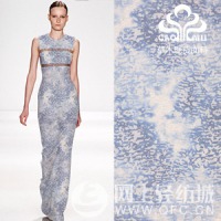 燒花印花,亦稱(chēng)透明加工、腐蝕加工,日本稱(chēng)為碳化印花。是由二種纖維組成的織物,其中一種纖維能被某種化學(xué)品破壞.而另一種纖維則不受影響;因此可用一種化學(xué)品調(diào)成印花色漿印花以后,經(jīng)過(guò)適當(dāng)?shù)暮筇幚恚蛊渲幸环N纖維破壞,便形成特殊風(fēng)格、透明格調(diào)的爛花印花織物。近年來(lái),爛花服裝衣片印花發(fā)展很快。像棉與尼綸的針織外衣經(jīng)爛花印花后,透明的花型中襯托出內(nèi)層的色澤,富有立體感,高雅別致。