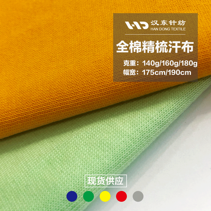 全棉精梳汗布=100%棉,只是紡紗階段用“精梳”工藝把棉纖維中的短纖、雜質(zhì)進(jìn)一步剔除,留下整齊的長纖再織成汗布;市面上也有為了改善彈性而加入5%左右氨綸的“精梳棉氨綸汗布”,但主體仍是精梳棉紗。