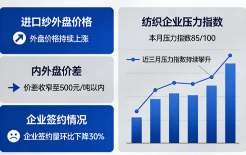 近期,國內(nèi)棉紗進口市場迎來明顯變化,在外盤報價大幅上調(diào)的帶動下,進口紗整體行情走強,但國內(nèi)市場跟漲乏力,內(nèi)外價差快速收窄,直接導(dǎo)致貿(mào)易商和下游織布廠采購心態(tài)轉(zhuǎn)向謹慎,二季度進口紗格局或?qū)⒂瓉碚{(diào)整。
