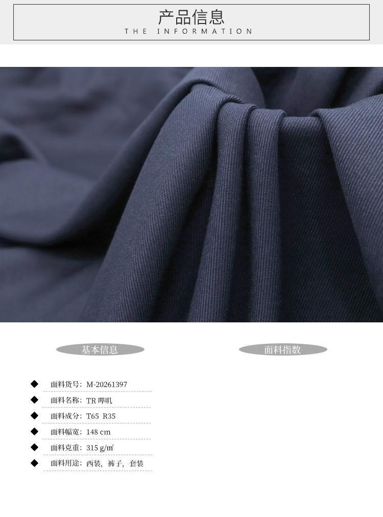 藏青粗TR嗶嘰布 梭織西裝西褲套裝褲料制服職業(yè)裝嗶嘰布