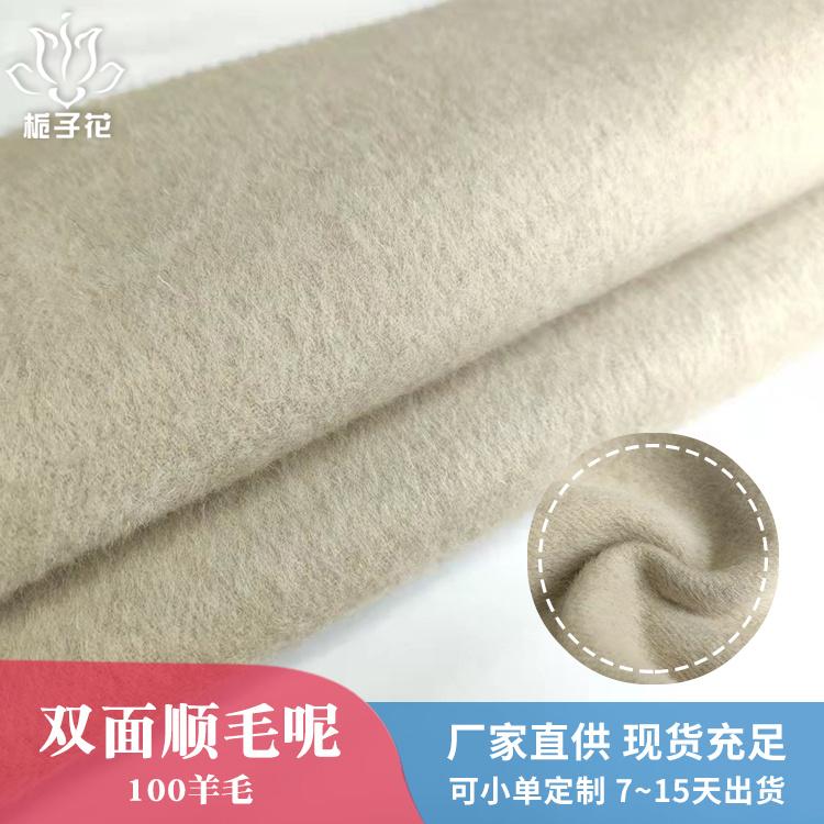 全羊毛米色雙面順毛呢面料秋冬服裝外套粗紡毛料工廠供應(yīng)大衣呢子布料