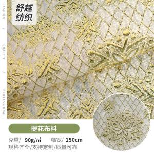 現(xiàn)貨供應(yīng)小雛菊裝飾布金蔥布金銀絲小方格子布全滌提花布面料