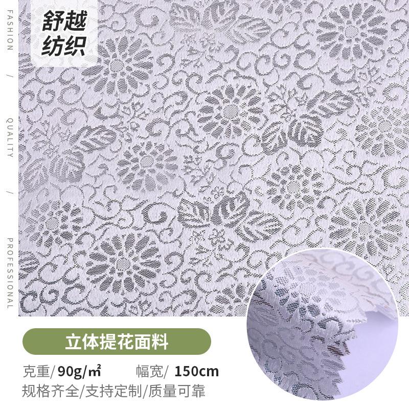 廠家大花朵樹葉色織提花布裝飾布桌布舞臺布銀色凸感立體提花面料