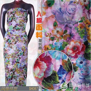 SH087 數(shù)碼印花 服裝印花面料 100%人棉 裙面料 現(xiàn)貨批發(fā)