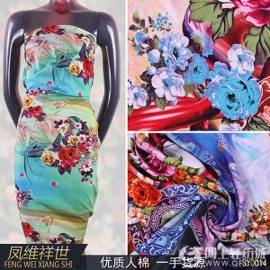 SY0014 數(shù)碼印花 服裝印花面料 100%人棉 裙面料 現(xiàn)貨批發(fā)