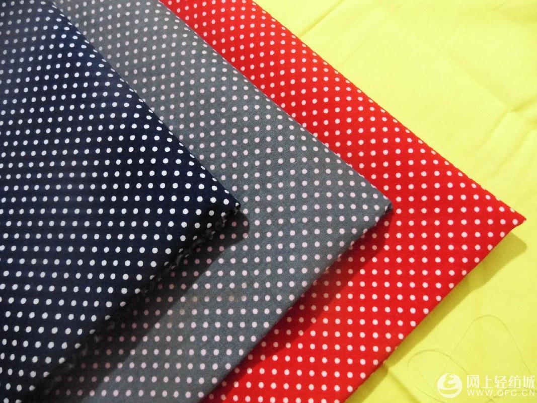 全棉16*16+70D 彈力紗卡 碳素磨毛活性圓點印花 服裝服飾